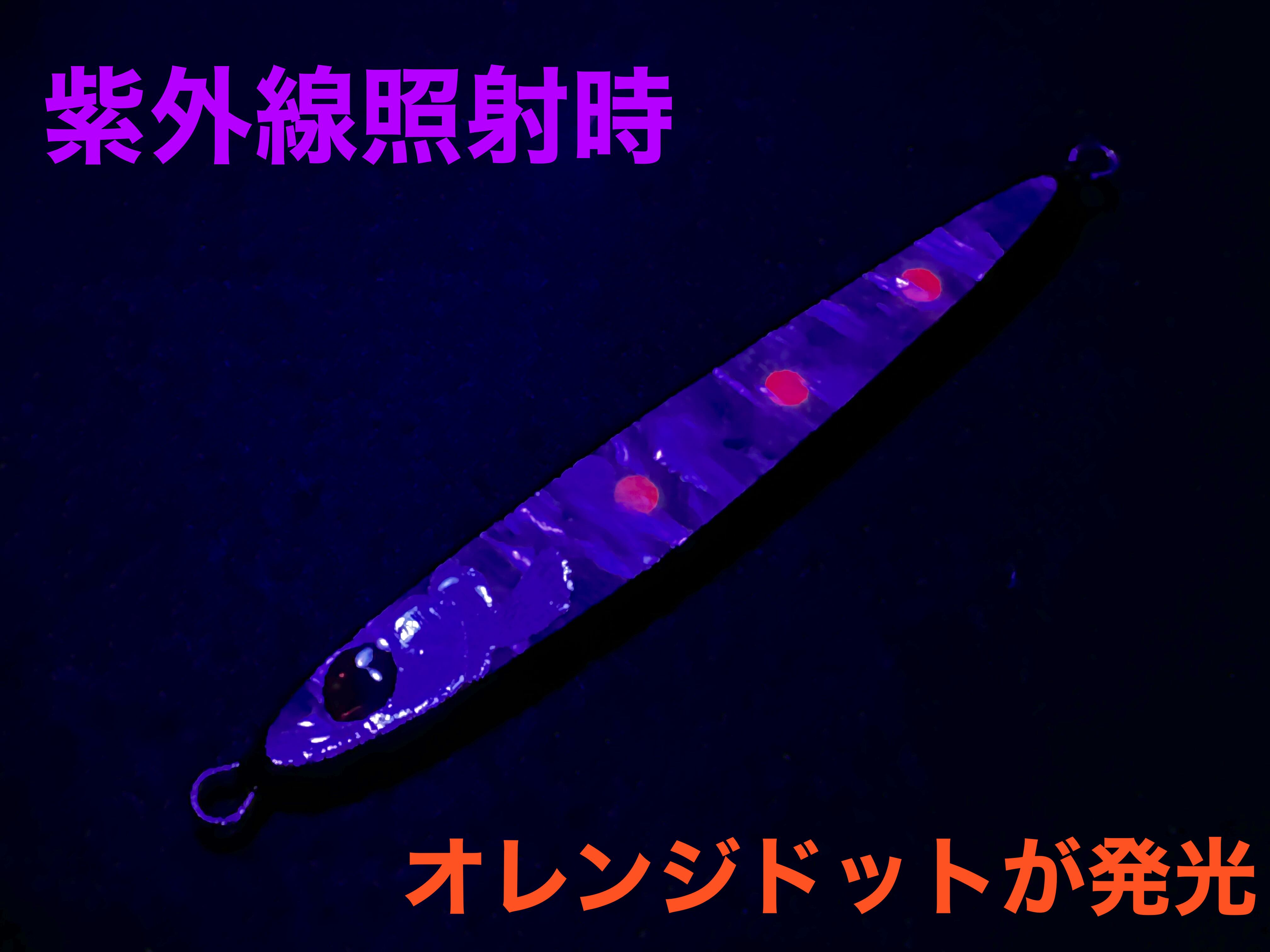 側面のオレンジドットは紫外線照射により発光し魚にアピールしてくれます。